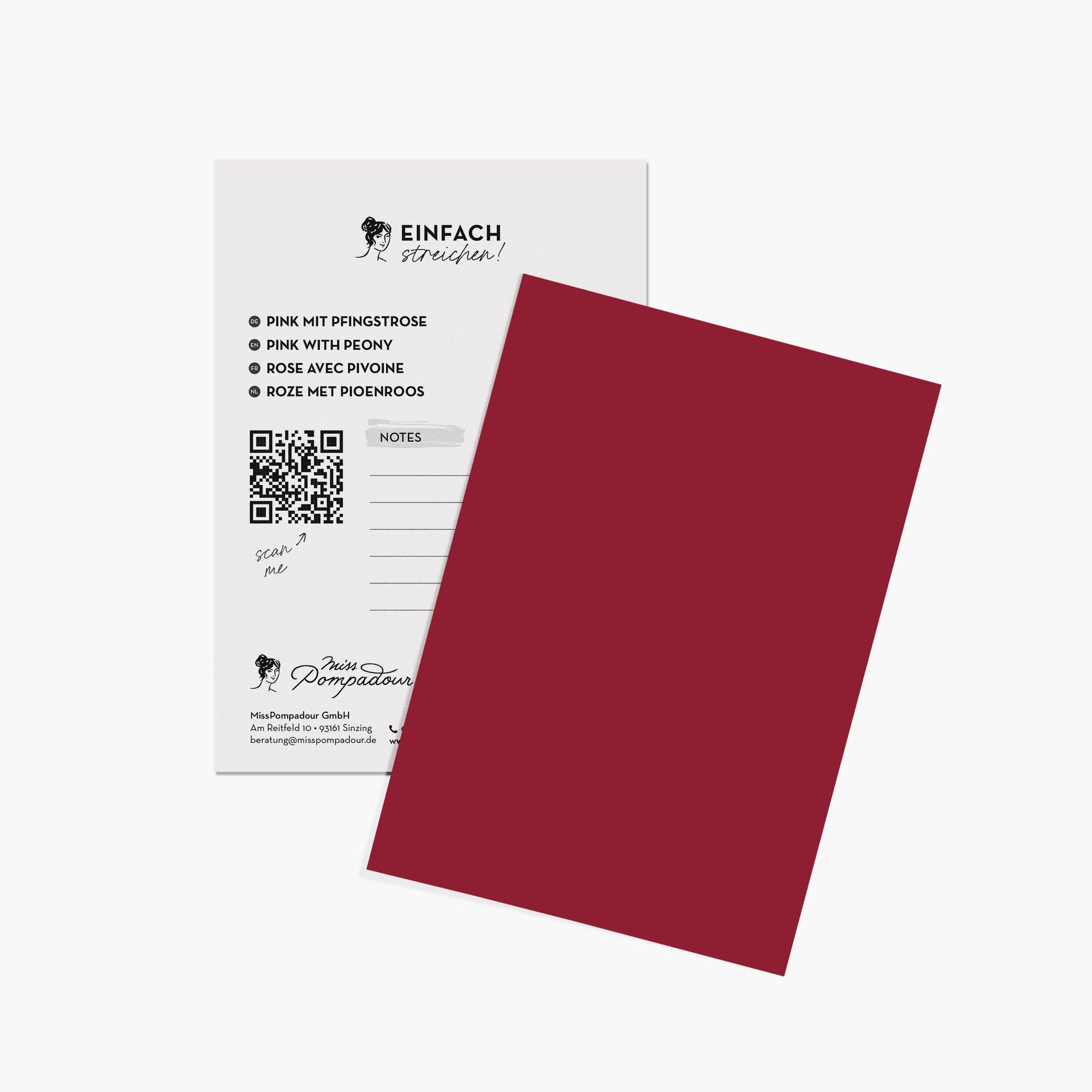 Alle Wandfarben von MissPompadour gibt es in zwei Qualitäten: Zum einen Die Wertvolle, eine konservierungsmittelfreie Farbe mit ungeheurer Farbtiefe und samtigem Finish an der Wand. Zum anderen die abwaschbare Strapazierfarbe Die Nützliche. Sie eignet sich besonders für Küche, Flure und andere stark belastete Räumen. Speziell - aber nicht nur - für Kinder haben wir unsere LittlePomp-Kreidekollektion im Sortiment. Diese Kreidefarbe gibt es in 15 sanften Pastelltönen.