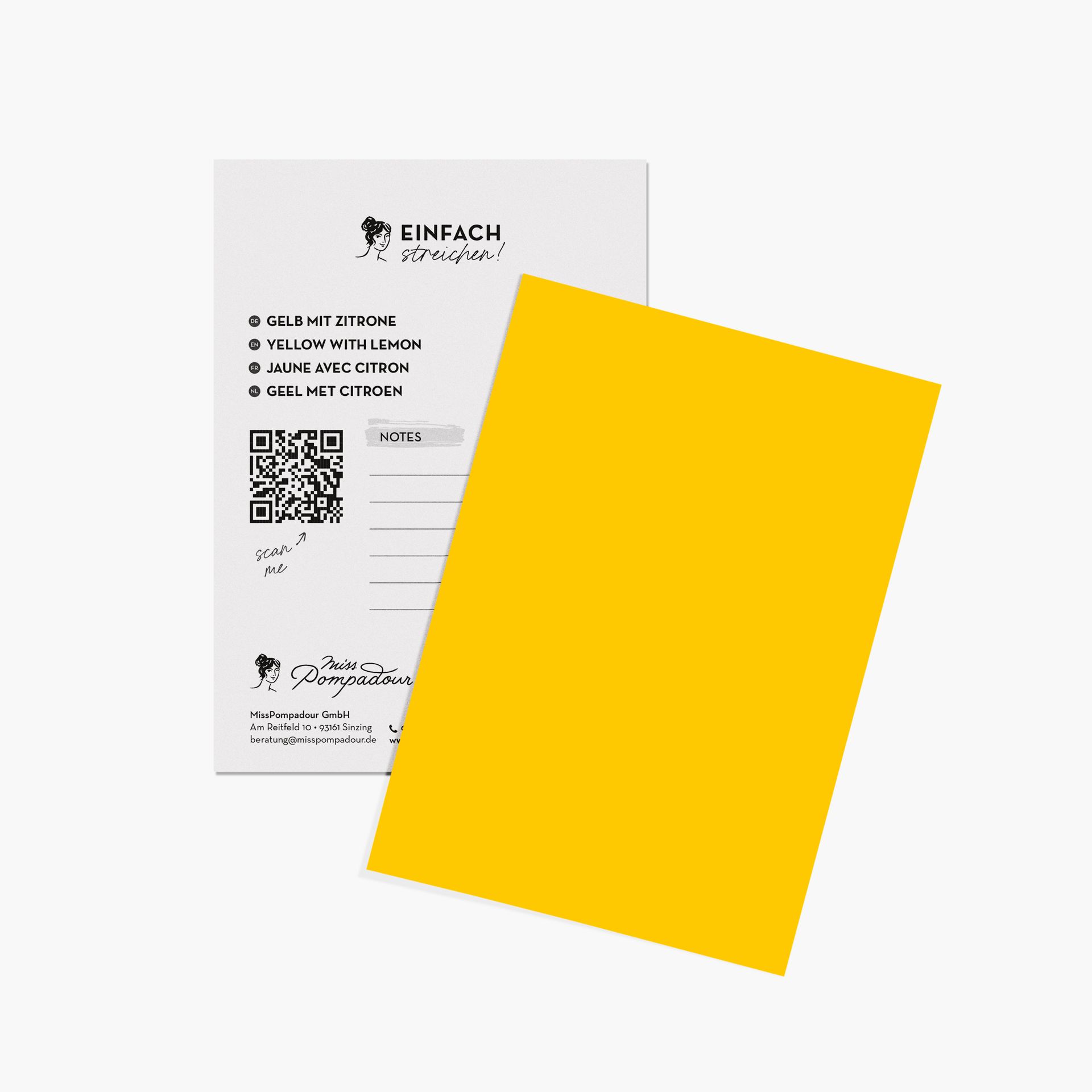 Weiß mit Vanille von MissPompadour ist ein typisches Beispiel für ein fast weißes Gelb. Gelb mit Safran ist ein warmes, fast gedecktes Gelb. Gelb mit Zitrone von MissPompadour sorgt in deinen Räumen für ein kräftiges, leuchtendes Gelb.
