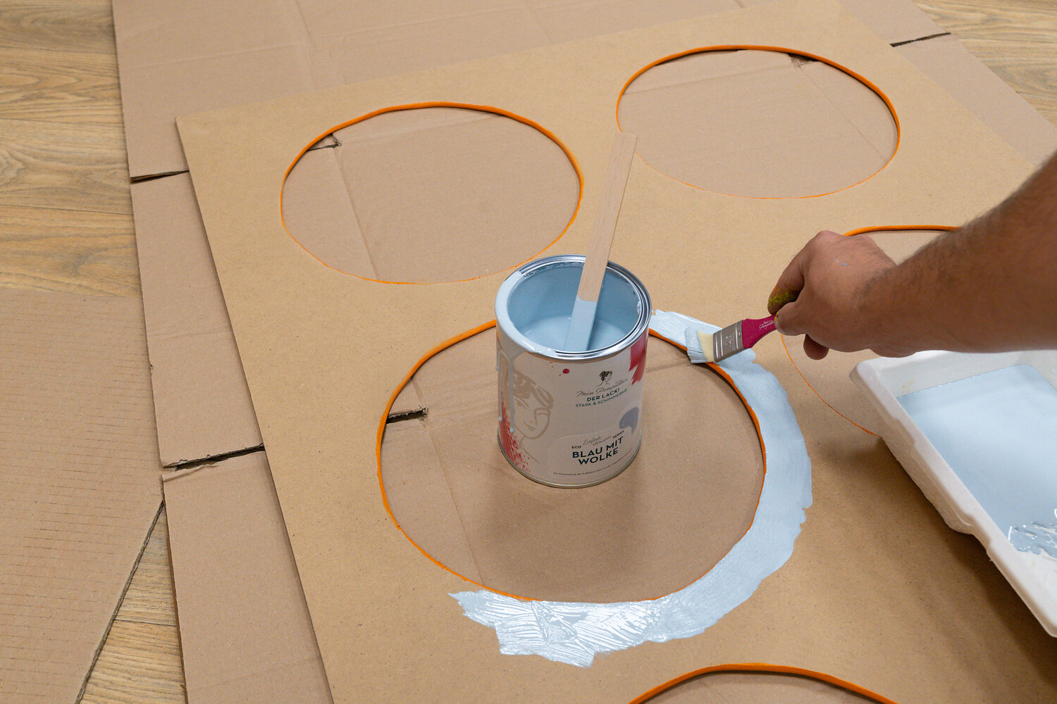 Die Ränder der ausgeschnittenen Kreise kannst du anschließend ganz einfach mit Schleifpapier sauber glätten. Sauge den Bereich ab und mache ihn streichbereit.