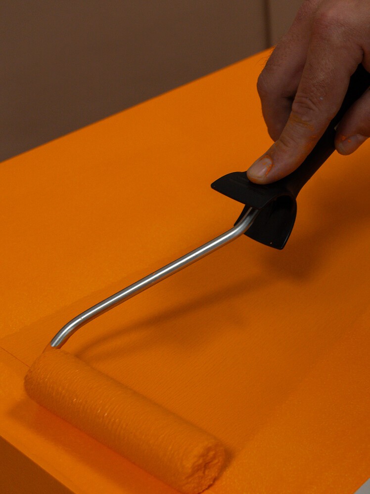 Jetzt geht’s ans Lackieren der Außenseiten und der Konturen mit dem Farbton deiner Wahl. Wir haben uns für unseren Alles Streichen Lack! im Farbton Orange mit Mandarine entschieden.