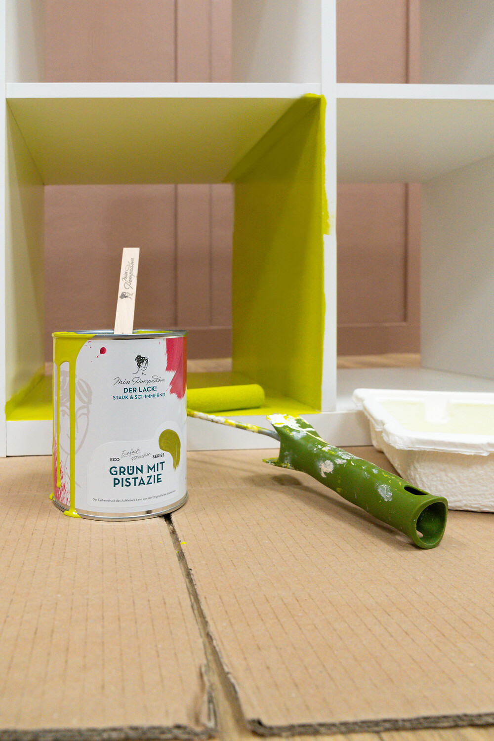 Streiche jetzt die Innenflächen mit dem Alles Streichen Lack! im Farbton Grün mit Pistazie.
