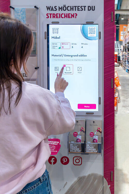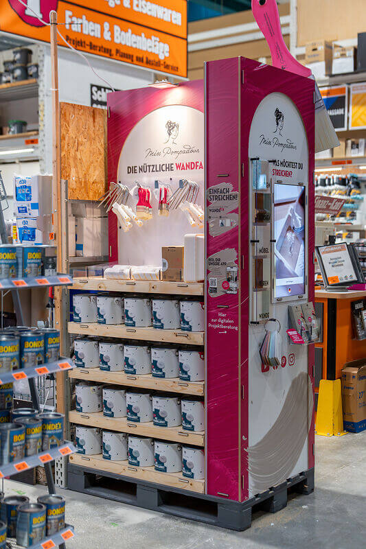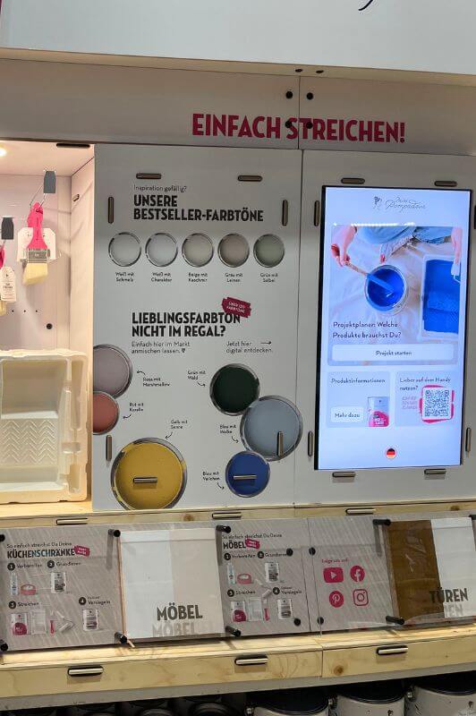 Vor Ort findest Du eine Auswahl vorgemischter Farbtöne als Die Nützliche Wandfarbe! und als Alles Streichen Lack! – direkt im Markt verfügbar.