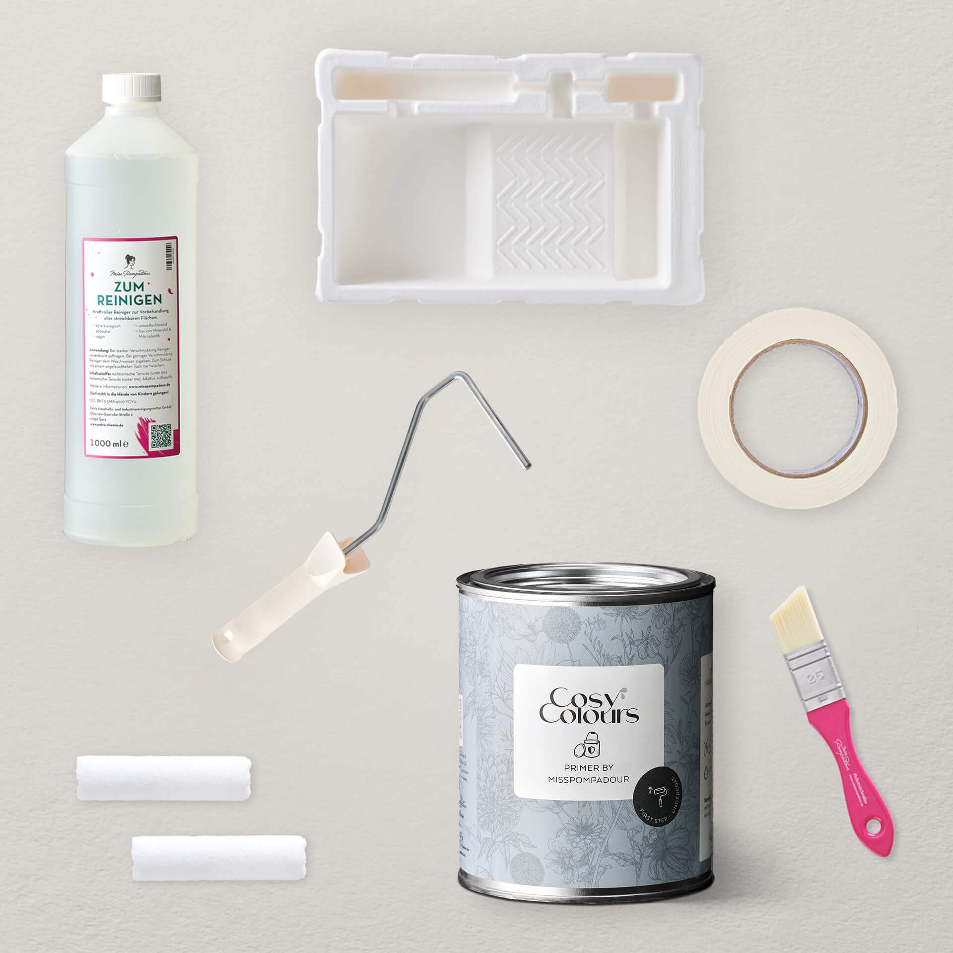 CosyColours Primer ist zwei Produkte in einem: Stainblock und Haftgrund gleichzeitig! Ob Wände, Holz, Fliesen, Metall oder Glas: Mit dieser Grundierung bereitest Du problematische Untergründe perfekt auf den Anstrich vor.