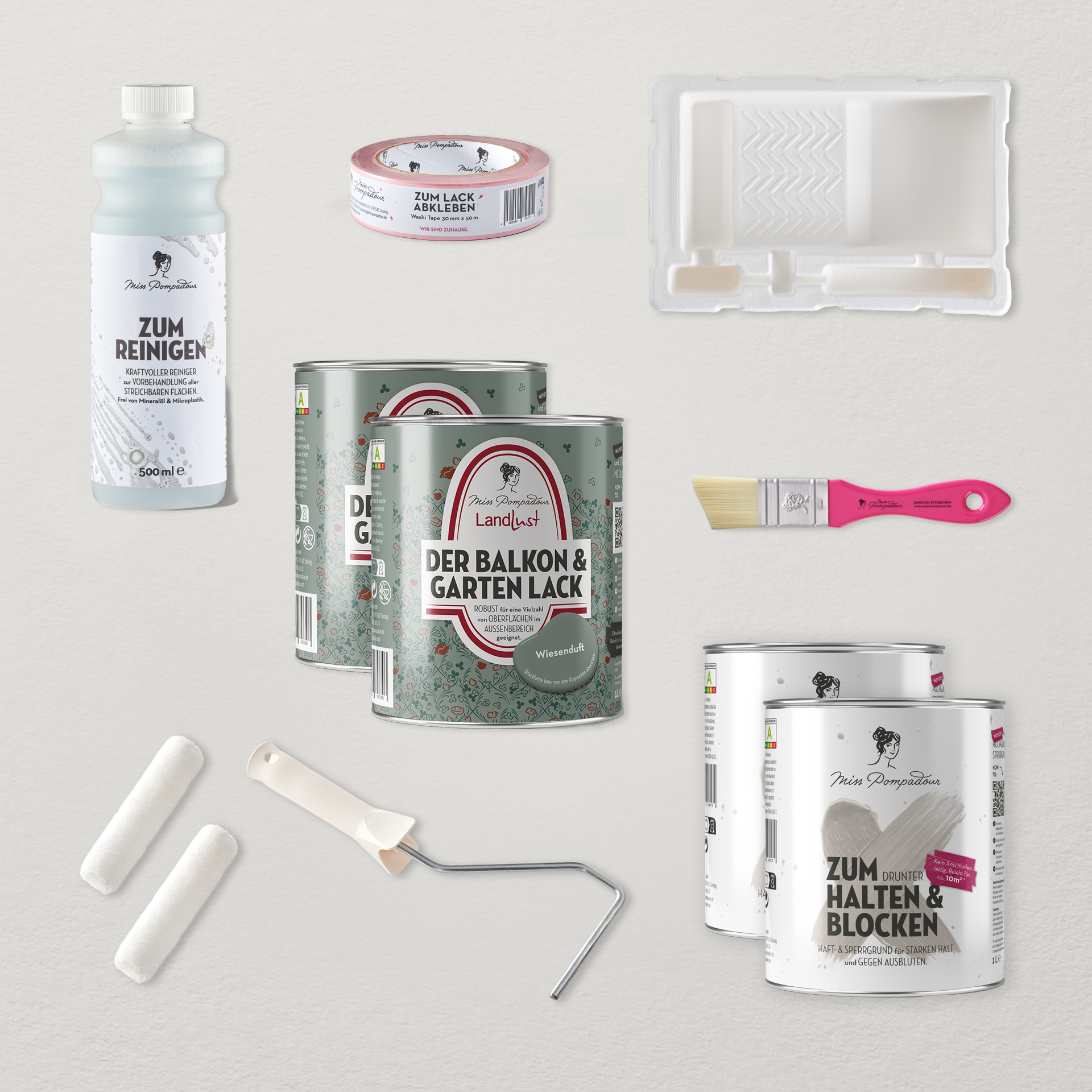 Beim Kauf dieses Sets erhältst du das gesamte Streichzubehör gratis - du bezahlst nur 2x Zum Halten & Blocken und 2x Balkon & Garten Lack. Das entspricht einem Rabatt von mehr als 12 %.