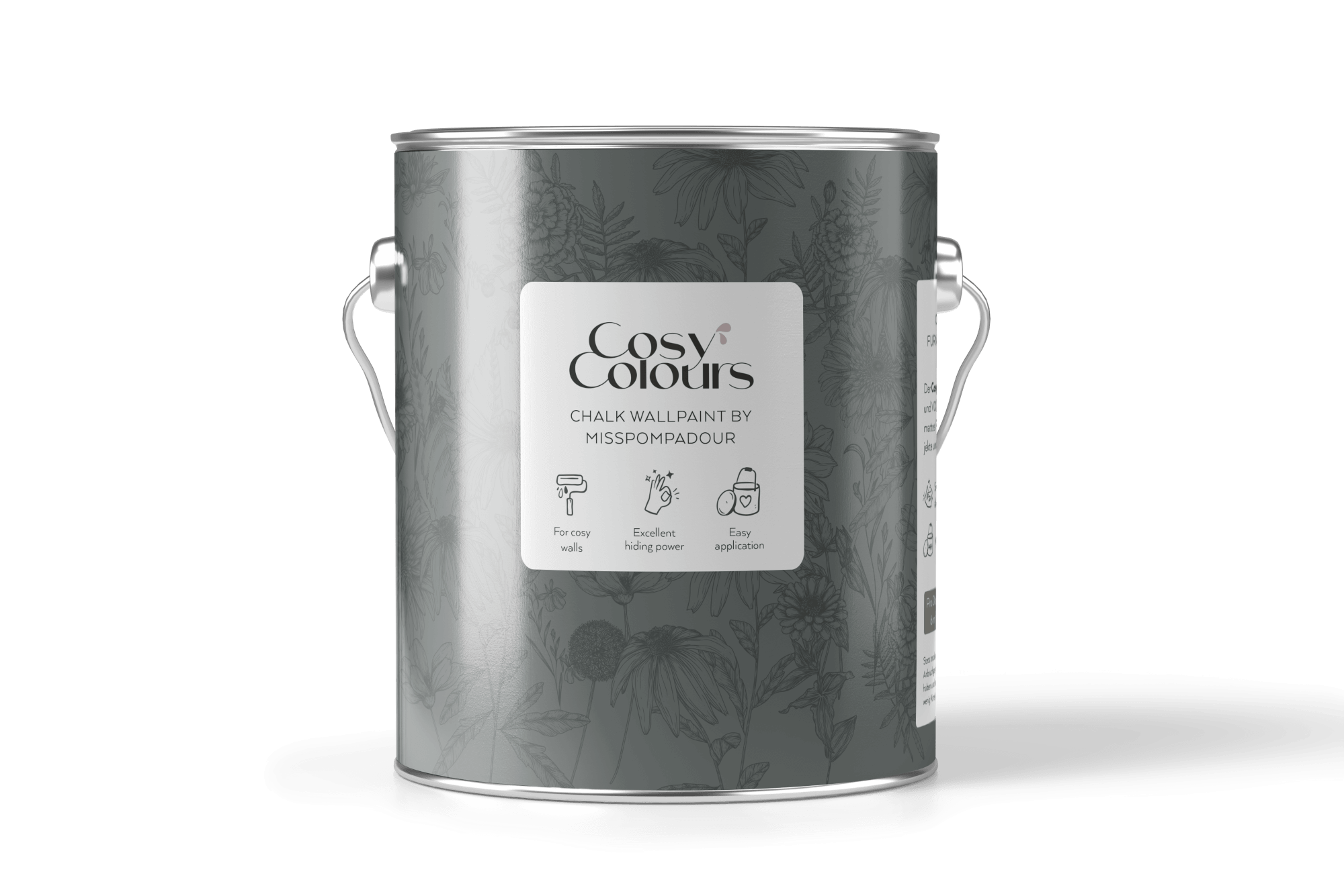 | CosyColours Wandfarbe: | CosyColours Kreide-Wandfarbe ist unsere matte Wandfarbe, die samtige, warme Oberflächen schafft und deinem Raum die Eleganz alter Zeiten verleiht. Die harmonischen Farbtöne mit der unvergleichlichen Farbtiefe verdanken ihre subtile Ausstrahlung oft leicht nebligen Grauanteilen. Sie lassen sich zudem alle wunderbar miteinander und mit den dazu passenden CosyColours Kreidelacken kombinieren. CosyColours Kreidefarbe ist VOC-frei, sodass bei der Trocknung keine belastenden, flüchtigen Stoffe ausgedünstet werden. Vorbereitung und Anwendung: Untergrund gründlich reinigen und lose Farbschichten entfernen. Fehlstellen mit Spachtelmasse ausbessern. Bei stark saugenden Untergründen (frischer Putz, alter Anstrich mimt mineralischen Farben, verspachtelte Gipskartonplatten, Altbauwände mit Reparaturstellen) empfiehlt sich ein Voranstrich mit Zum Wand Grundieren. Deckanstrich mit Malerwalze und Pinsel. Je nach Farbton und Untergrund können mehrere Anstriche erforderlich sein. Reichweite: Ca. 8 m2/l, je nach Saugfähigkeit des Untergrunds. Trockenzeit: Staubtrocken nach ca. 0,5 - 1 Stunden, überstreichbar nach 4 - 5 Stunden, nach 3 Tagenv vollständig belastbar. Die angegebenen Trocknungszeiten sind Durchschnittswerte. Haltbarkeit: Mindestens 12 Monate in ungeöffneter Verpackung bei kühler und frostfreier Lagerung haltbar. |