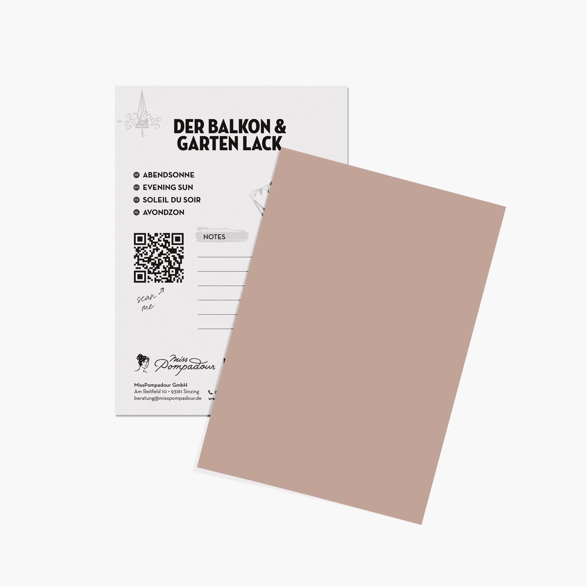 Nimm die Farbkarten einfach mit auf den Balkon oder in den Garten und prüfe die Farben bei unterschiedlichem Licht – morgens, mittags oder abends. Befestige die Farbkarten direkt an deinem Werkstück und vergleiche die ausgewählten Töne ganz entspannt miteinander. Auch Farbkombinationen lassen sich so einfach ausprobieren. Mit unseren Farbkarten stehen dir alle Möglichkeiten offen!